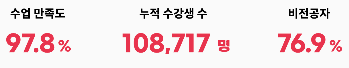이렇다고 합니다!! 만족도가 97.8%라니.... 얼마나 질 좋은 수업인지 미리 체감할 수 있는 것 같아요!