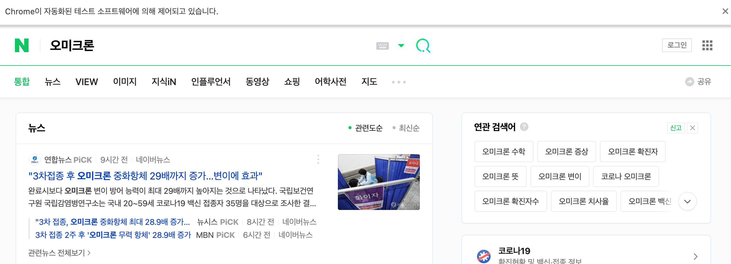 2. 네이버 검색창에 오미크론 검색