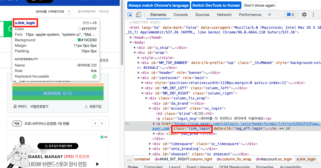 1. 네이버로 접속해, class 이름이 link_login인 element를 찾아서 클릭하고, 창을 뒤, 앞, 새로고침