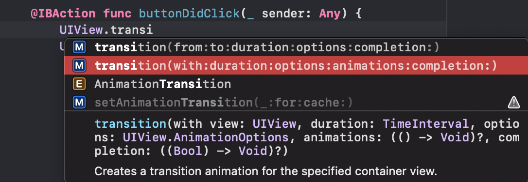 애니메이션 UIView.transition()을 썼다.