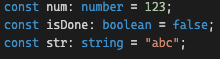 - 타입스크립트는 타입이라는 개념이 등장하며 :type 형태로 타입을 명시한다.