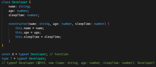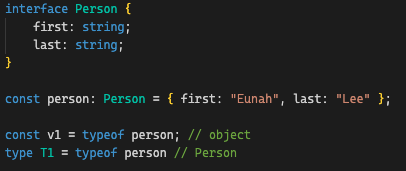 - typeof 연산자도 값에서 쓰일 때와 타입에서 쓰일 때의 역할이 다르다.