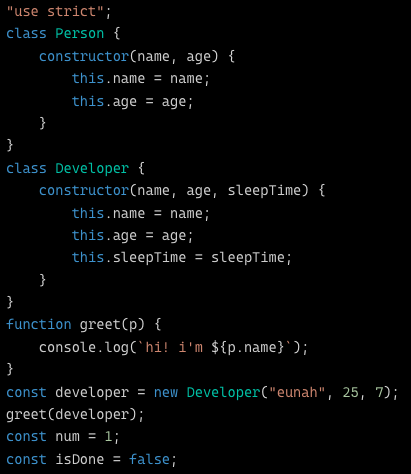 - 타입스크립트의 서브 타이핑, 즉 타입의 상속 역시 구조적 타이핑을 기반으로 하고 있다.