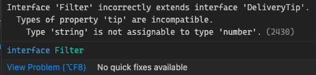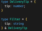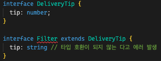 - tip이라는 같은 속성에 대해 서로 호환되지 않는 타입이 선언되어 결국, never 타입이 된 것이다.