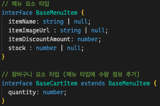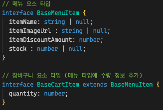 - BaseCartItem 은 BaseMenuItem을 확장시킴.