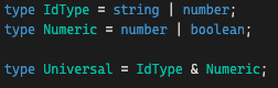 - Universal 은 IdType 과 Numeric의 교차 타입이므로 두 타입을 모두 만족하는 경우에 유지된다.
